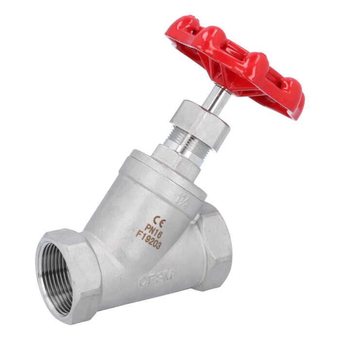 Schrägsitzventil 11/4", PN16 Edelstahl 1.4408/PTFE