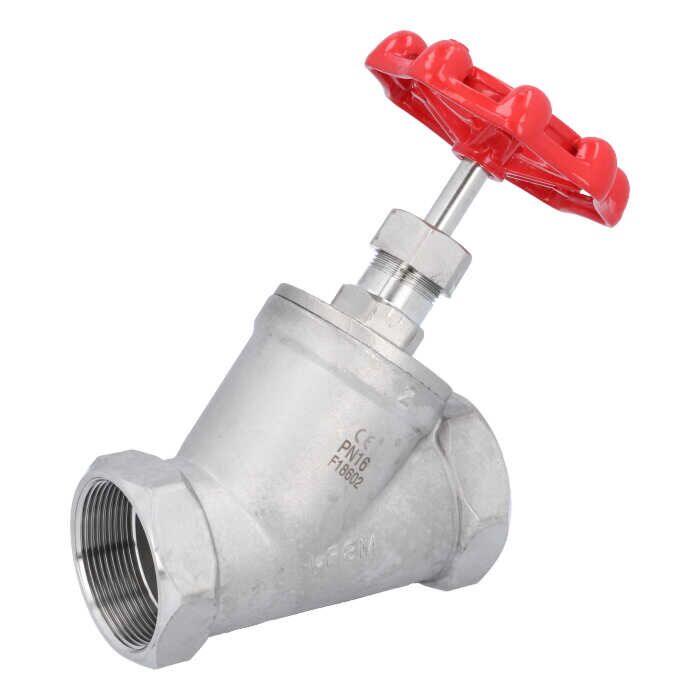Schrägsitzventil 2", PN16 Edelstahl 1.4408/PTFE