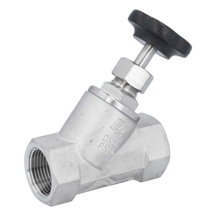 Schrägsitzventil 1", PN40 Edelstahl 1.4408/PTFE