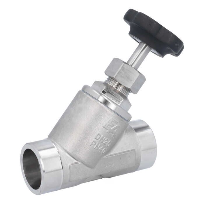 Schrägsitzventil DN25, PN40, DIN3239, Edelstahl 1.4408/PTFE