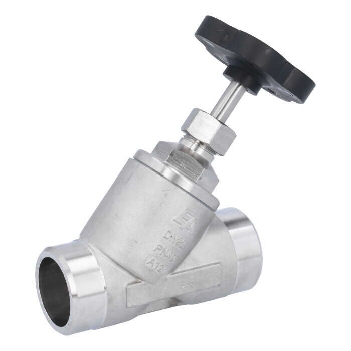 Schrägsitzventil DN32, PN40, DIN3239, Edelstahl 1.4408/PTFE