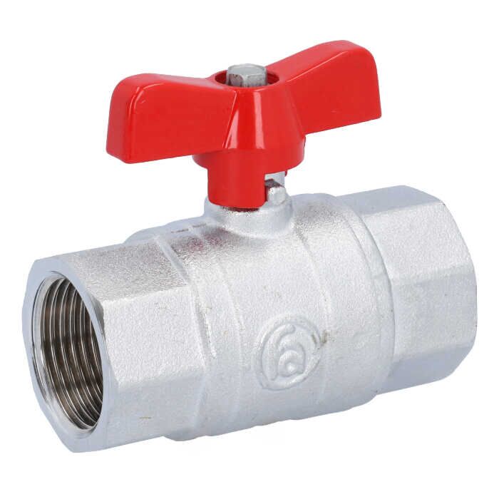 Kugelhahn 1", PN40, Ms/PTFE-FKM, Innengewinde, voller Durchgang, Flügelgriff rot