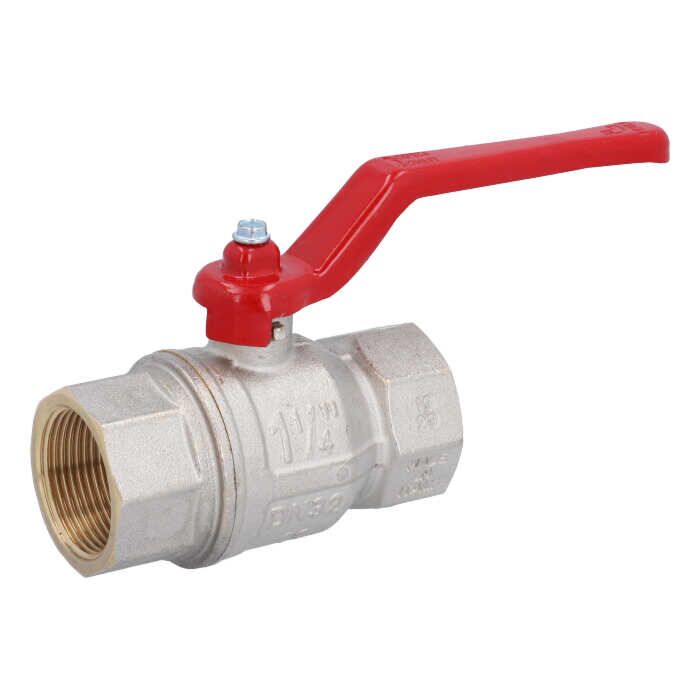 Bezeichnung Kugelhahn 11/4", PN30, Ms/PTFE-FKM Innengewinde, Baul.: 110mm, Handhebel