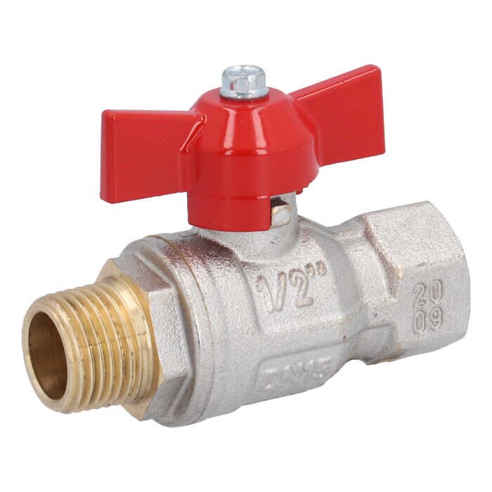 | Bezeichnung | Kugelhahn 1/2", PN50, Ms/PTFE-FKM Innen/Außengew, Baul.: 77mm, Flügelgriff |