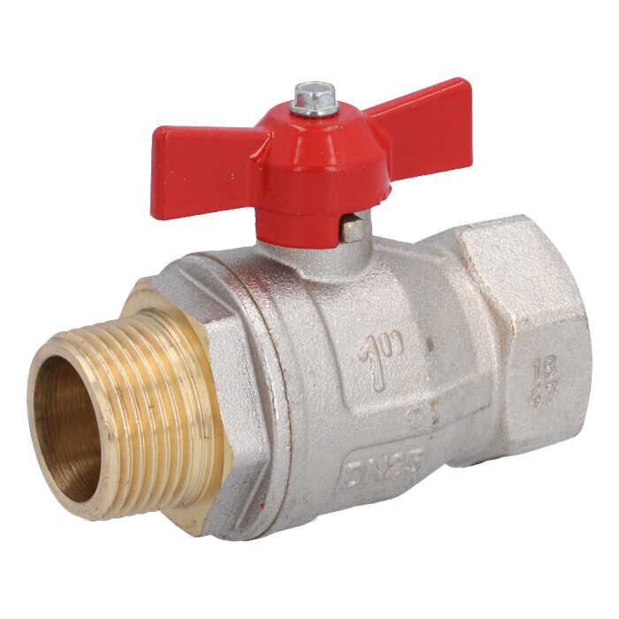 Kugelhahn 1", PN40, Ms/PTFE-FKM Innen/Außengew, Baul.: 92mm, Flügelgriff