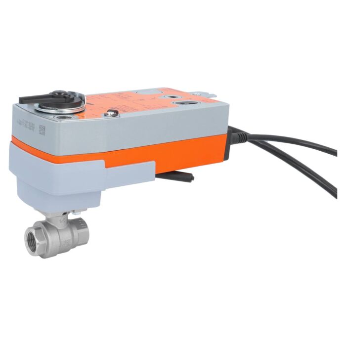 Kugelhahn-MU, 1/2", m. Antrieb-BE20, Laufz. 75sek. Edelstahl/PTFE-FKM, AC: 24-240V / DC: 24-125V