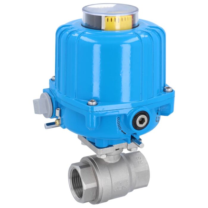 Kugelhahn MU, 1", mit Antrieb-NE03 Edelstahl/PTFE-FKM, 230V 50Hz, Laufzeit 12sek.