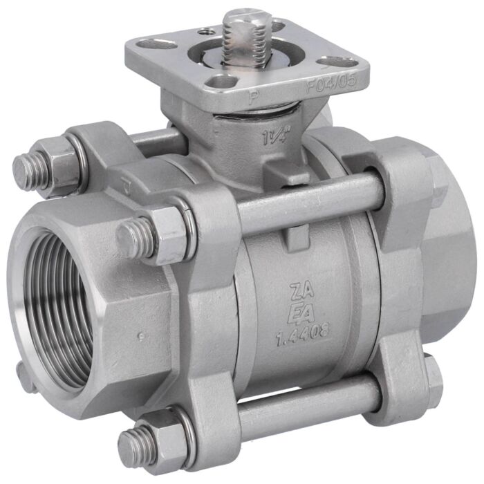 Bezeichnung Kugelhahn, PN64, Edelstahl/PTFE-FKM Innengewinde, Flansch für Antrieb