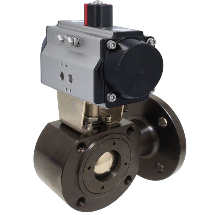 Kugelhahn-WT, DN50, mit Antrieb OE, EW110 Stahl/PTFE-FKM-NBR, L-Bohrung, federrückstellend