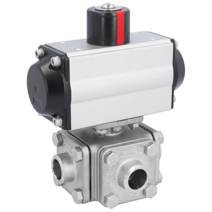 Kugelhahn-ZD, DN20, mit Antrieb-OD, DW50 Edelst. 1.4408/PTFE-FKM, L-Bohrung, doppeltwirkend