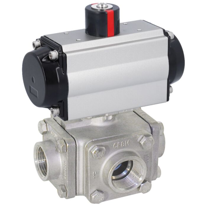 Kugelhahn-ZD, 1", mit Antrieb-OE, EW85 Ed. 1.4408/PTFE-FKM, T-Bohrung, federrückstellend