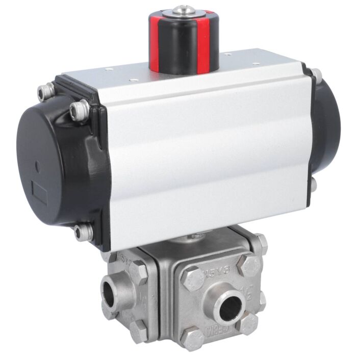 Kugelhahn-ZD, DN15, mit Antrieb-OE, EW65 Ed. 1.4408/PTFE-FKM, T-Bohrung, federrückstellend