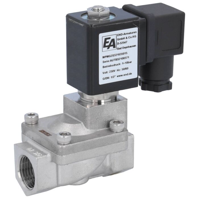 2/2-Magnetventil, G1/2", Edelstahl/NBR, 24VAC 1-10bar, servogesteuert
