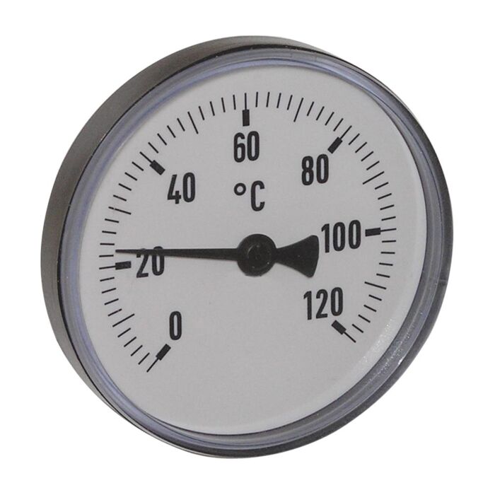 Bezeichnung Thermometer, Kunststoff, Ø63mm, Schaftlänge: 40mm, 1/2"-axial, Anzeigebereich: 0 bis 120°C