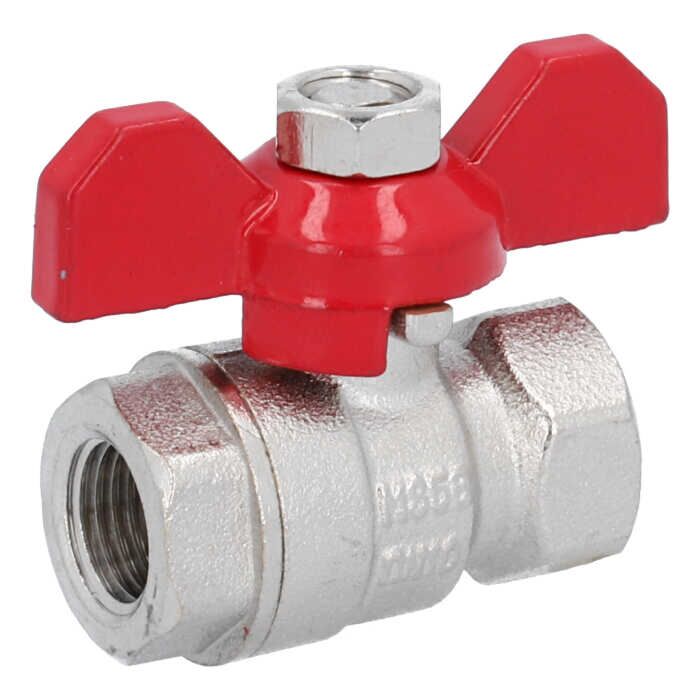 Kugelhahn, PN25, Messing/PTFE-NBR Innengewinde, Flügelgriff rot / Artikelnummer: CB1120