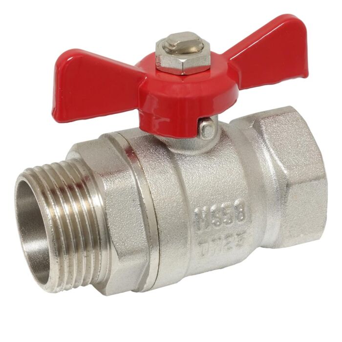 Kugelhahn 3/4", PN40, Ms/PTFE-FKM Innen-/Außengew. voller Durchgang, Flügelgriff=rot