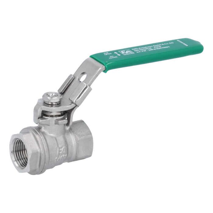 Kugelhahn, PN25 bis PN40, Edelst./PTFE, DVGW-W570 Innengewinde, Handhebel grün / Artikelnummer: FW3116
