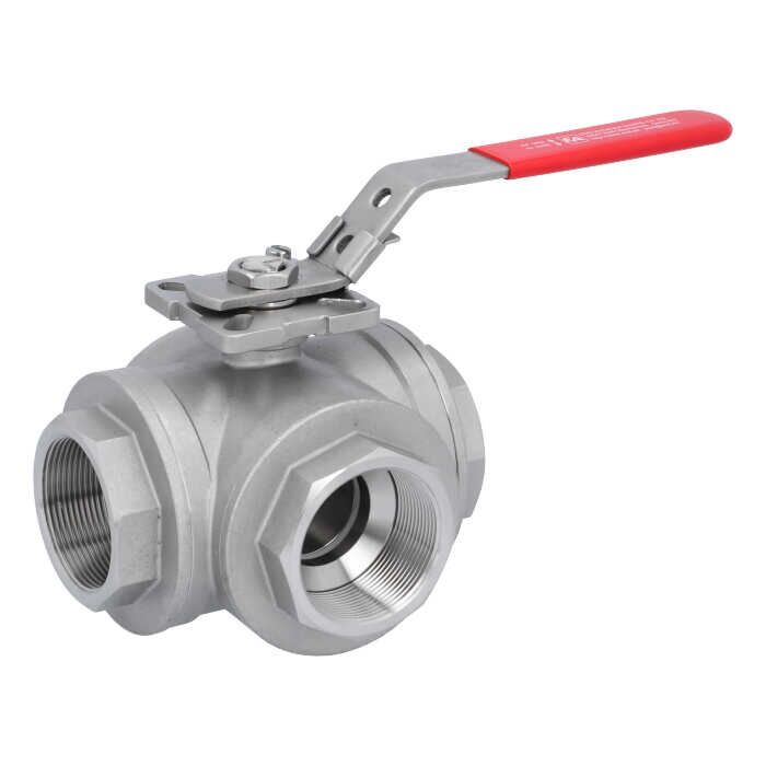 3-Wege Kugelhahn 2"-DIN2999, d40, PN63 L-Bohrung, Edelstahl 1.4408/PTFE-FKM, ISO5211