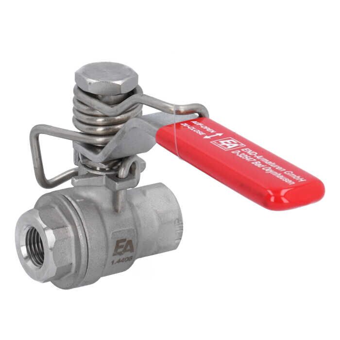 Kugelhahn 1/4", PN130, 1.4408/PTFE 2-teilig, Handhebel mit Federrückstellung