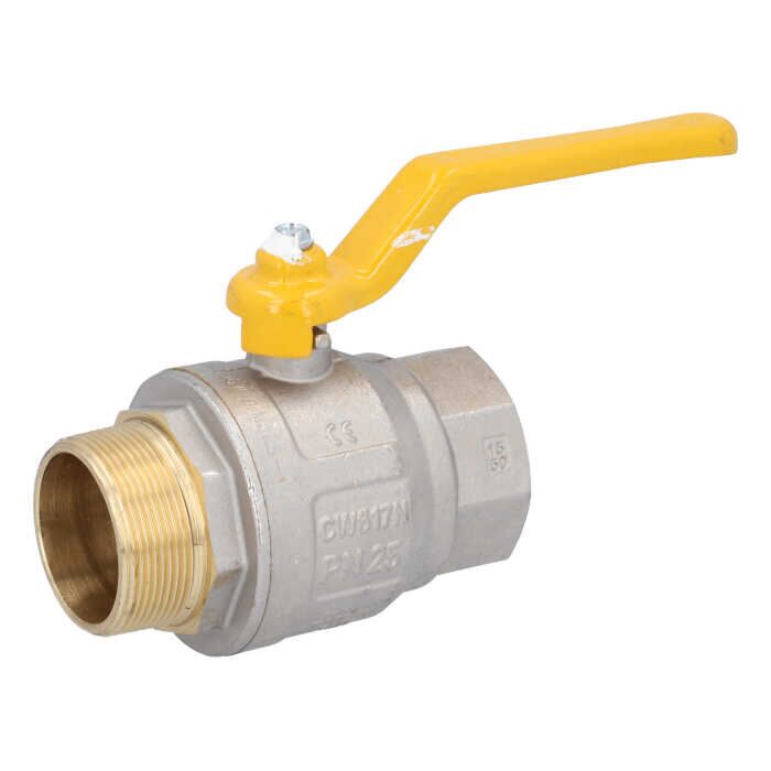 Kugelhahn, PN25 bis PN50, Messing/PTFE, DVGW-G Innen-/Außengewinde, Handhebel gelb / Artikelnummer: IK1119