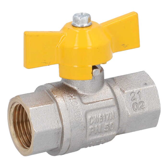 Kugelhahn, PN18 bis PN50, Messing/PTFE, DVGW-G Innengewinde, Flügelgriff gelb / Artikelnummer: IK1126