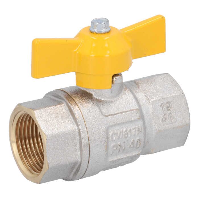 Kugelhahn, PN18 bis PN50, Messing/PTFE, DVGW-G Innengewinde, Flügelgriff gelb / Artikelnummer: IK1126