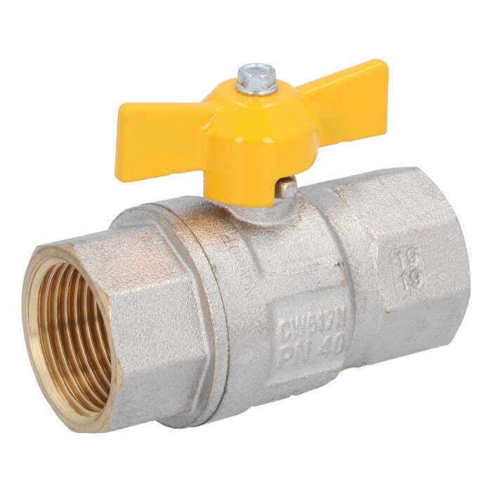 Kugelhahn, PN18 bis PN50, Messing/PTFE, DVGW-G Innengewinde, Flügelgriff gelb / Artikelnummer: IK1126