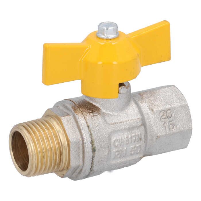 Kugelhahn, PN40 bis PN50, Messing/PTFE, DVGW-G Innen-/Außengewinde, Flügelgriff gelb / Artikelnummer: IK1129
