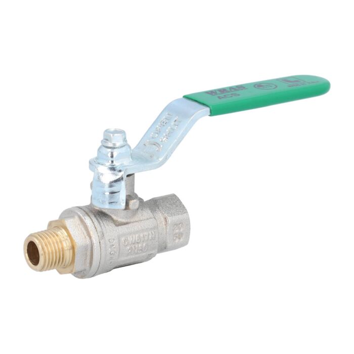 Kugelhahn, PN25 bis PN50, Messing/PTFE, DVGW-W570 Innen-/Außengewinde, Handhebel grün / Artikelnummer: IW1119