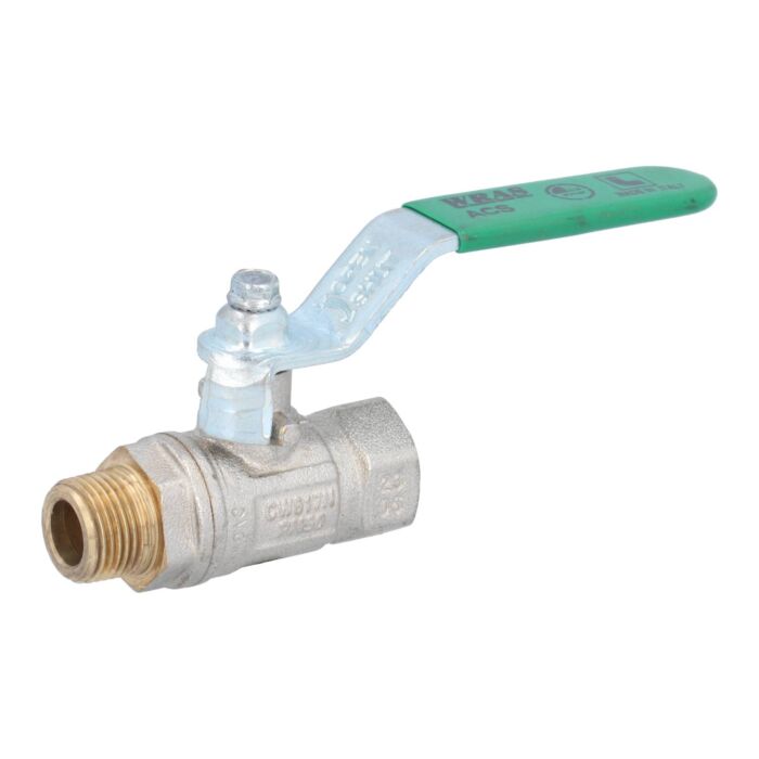 Kugelhahn, PN25 bis PN50, Messing/PTFE, DVGW-W570 Innen-/Außengewinde, Handhebel grün / Artikelnummer: IW1119
