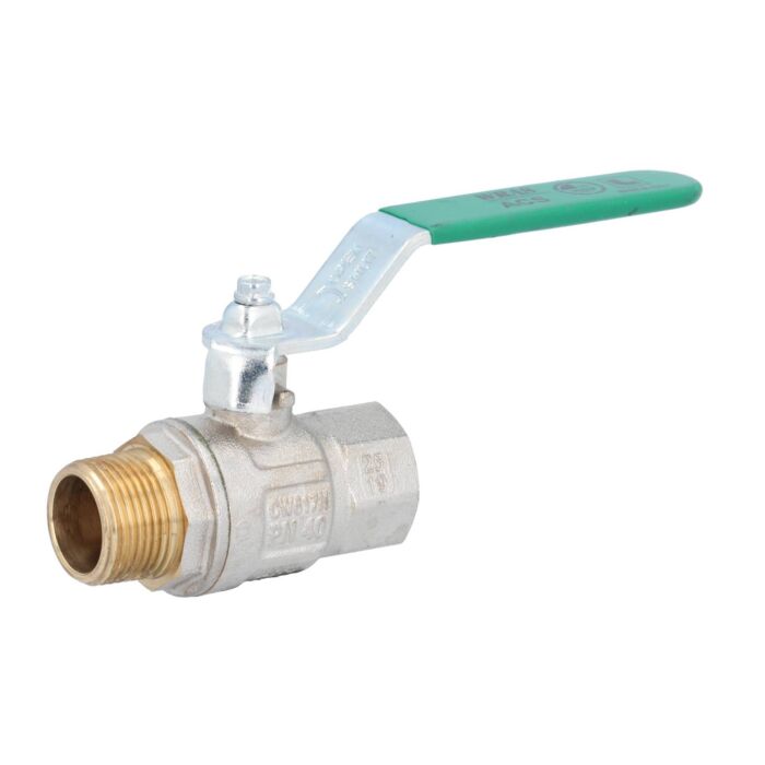 Kugelhahn, PN25 bis PN50, Messing/PTFE, DVGW-W570 Innen-/Außengewinde, Handhebel grün / Artikelnummer: IW1119