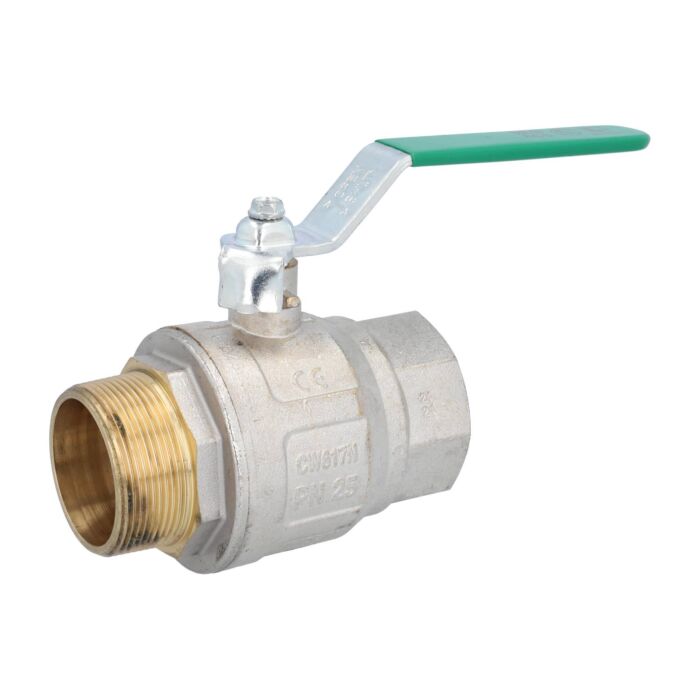 Kugelhahn, PN25 bis PN50, Messing/PTFE, DVGW-W570 Innen-/Außengewinde, Handhebel grün / Artikelnummer: IW1119