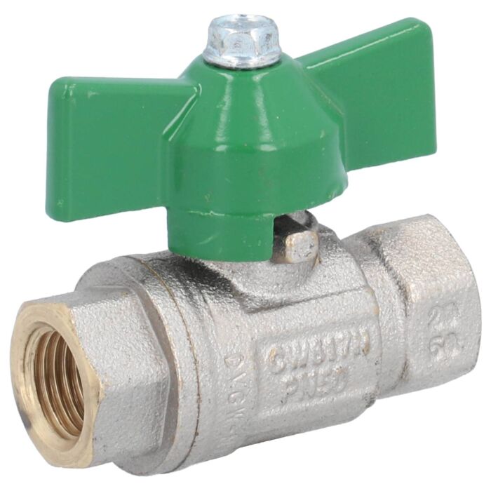 Kugelhahn, PN40 bis PN50, Messing/PTFE, DVGW-W570 Innengewinde, Flügelgriff grün / Artikelnummer: IW1126