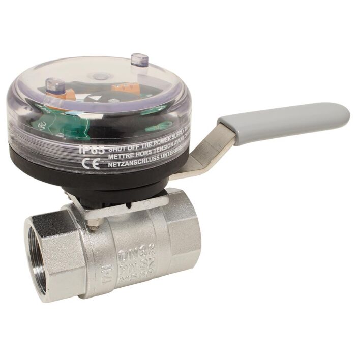 Kugelhahn-ZA, 2", mit VE-Endschalter el./mech. Innengewinde, Edel./PTFE-FKM, max. 250VAC-5A, IP65