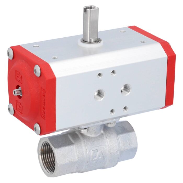 2-Wege Kugelhahn mit direkt aufgebautem pneumatischem Antrieb.