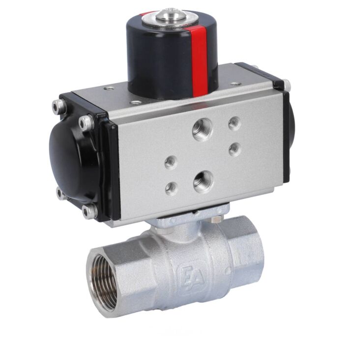 2-Wege Kugelhahn mit direkt aufgebautem pneumatischem Antrieb.