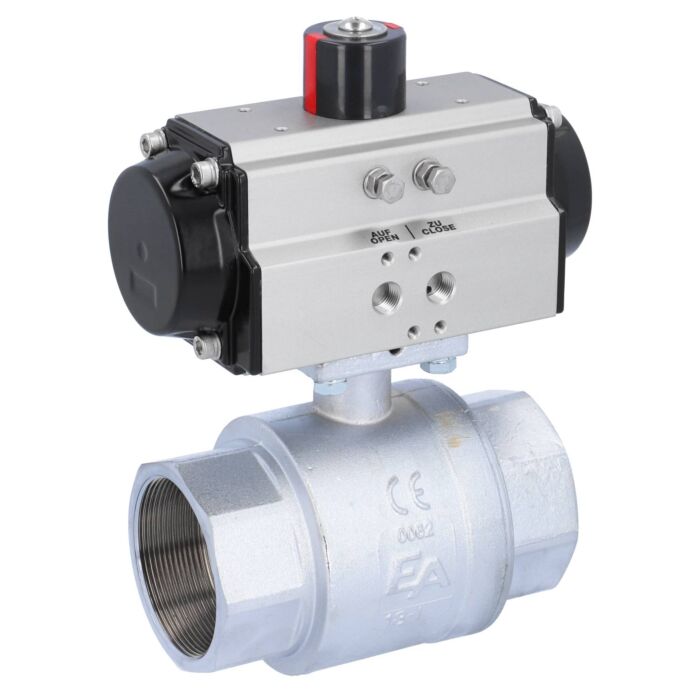 2-Wege Kugelhahn mit direkt aufgebautem pneumatischem Antrieb.