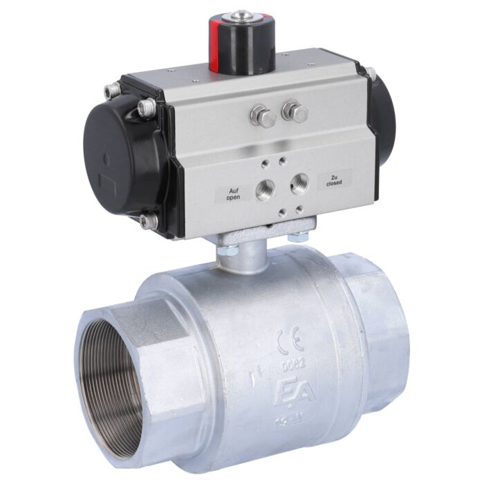 2-Wege Kugelhahn mit direkt aufgebautem pneumatischem Antrieb.