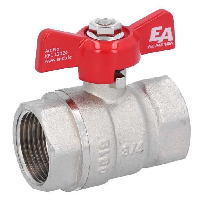 Kugelhahn 3/4", PN25, Flügelgriff Alu-rot Ms/PTFE-NBR, Innengewinde, voller Durchgang