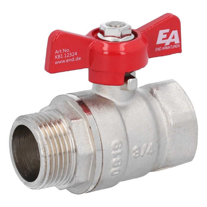 Kugelhahn 3/4", PN30, Messing/PTFE Innen-/Außengewinde, Flügelgriff