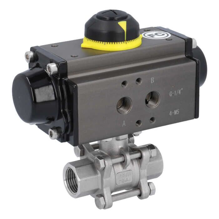Kugelhahn MA 3"-Innengewinde, mit Antrieb OE125 Edelstahl/PTFE-FKM, federrückstellend