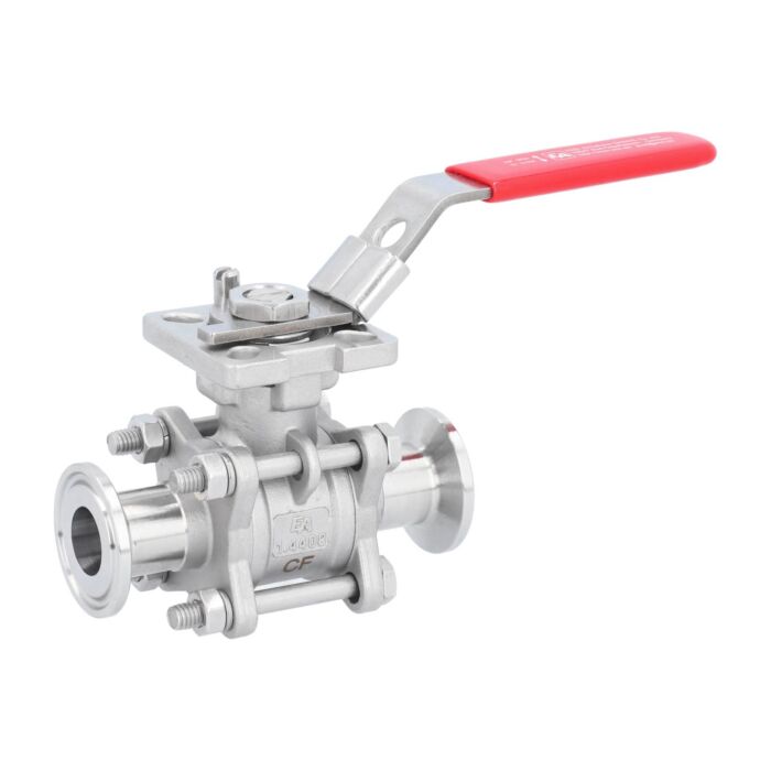 Kugelhahn DN15, PN63, 1.4408/PTFE-FKM, hohlraumarm Clamp nach DIN32676-Reihe A, ISO 5211, l=89mm