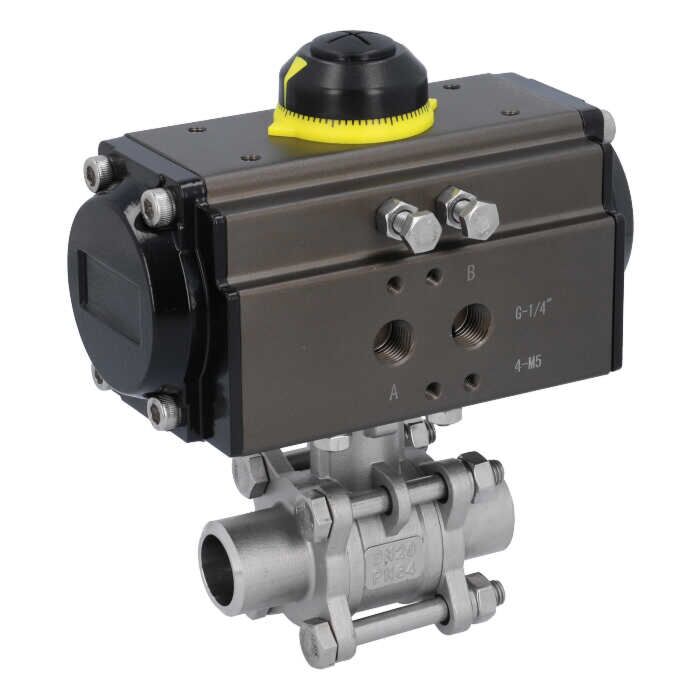 Kugelhahn MA DN20-Anschweißende, mit Antrieb OD52 Edelstahl/PTFE-FKM, doppeltwirkend