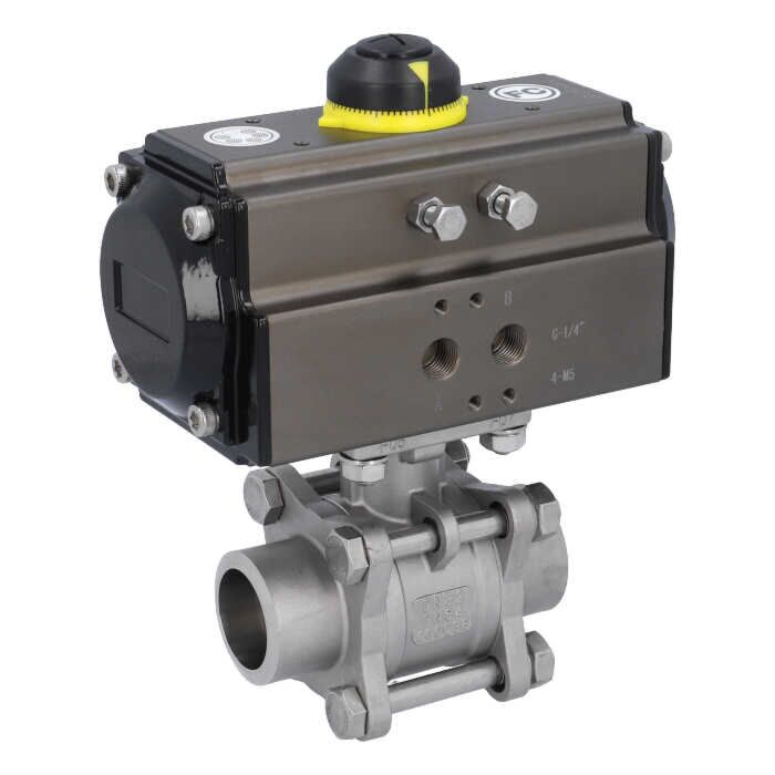 Kugelhahn MA DN32-Anschweißende, mit Antrieb OE63 Edelstahl/PTFE-FKM, federrückstellend