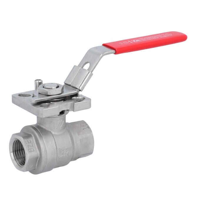 Kugelhahn 1/2", PN63, Edelstahl 1.4408/PTFE-FKM Innengewinde, ISO 5211, voller Durchgang
