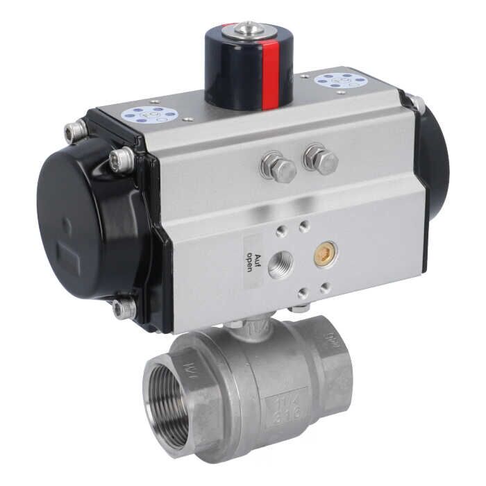 Kugelhahn MU 11/4", mit Antrieb OE, EW65 Edelstahl/PTFE-FKM, federrückstellend