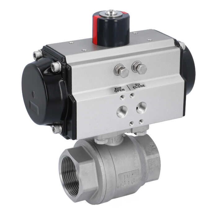 Kugelhahn MU 11/2", mit Antrieb OD, DW65 Edelstahl/PTFE-FKM, doppeltwirkend
