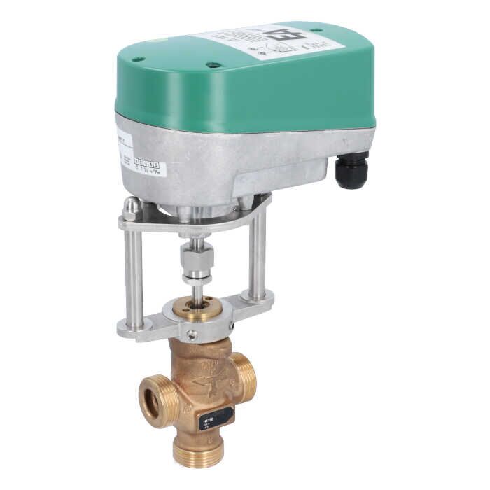 3-Wege-Motorregelventil, DN15, Außengewinde G11/8", Rg/Metall-EPDM, PN16, 24V AC/DC, Kvs=1.6m³/h
