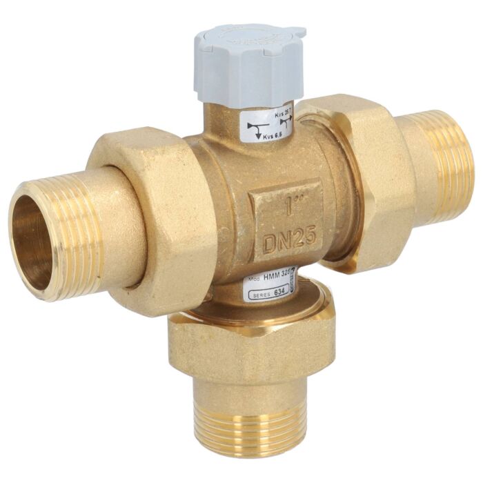 Kugelhahn 1", PN10, Ms/PTFE, L-Bohrung mit Überwurfverschraubung