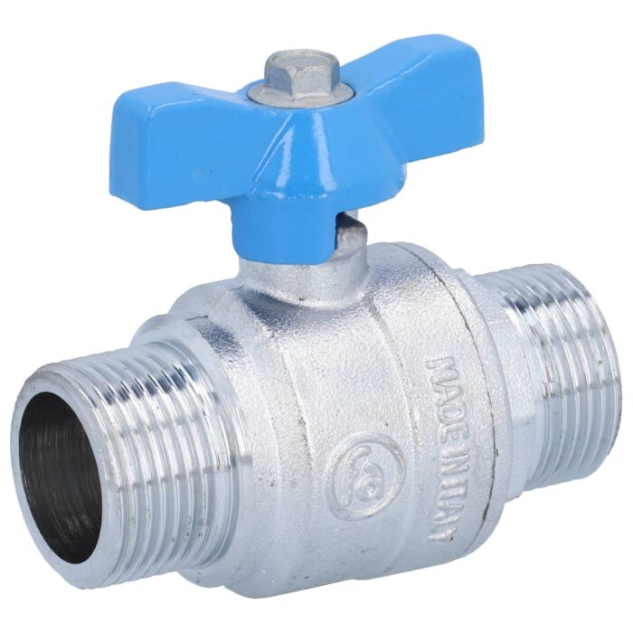 Kugelhahn 3/4", PN40, Ms/PTFE-FKM Außengewinde, voller Durchgang, Flügelgriff blau
